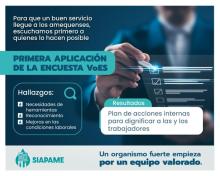 Con la convicción de que un organismo más fuerte empieza desde dentro, en SIAPAME se llevó a cabo la aplicación de la encuesta VoEs (Voz y Opinión del Empleado del Servicio) dirigida al personal operativo, técnico y administrativo que labora en el organismo.